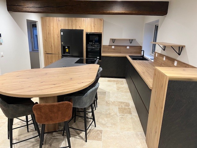 Accueil / Projets / CUISINE EN NOIR ET BOIS